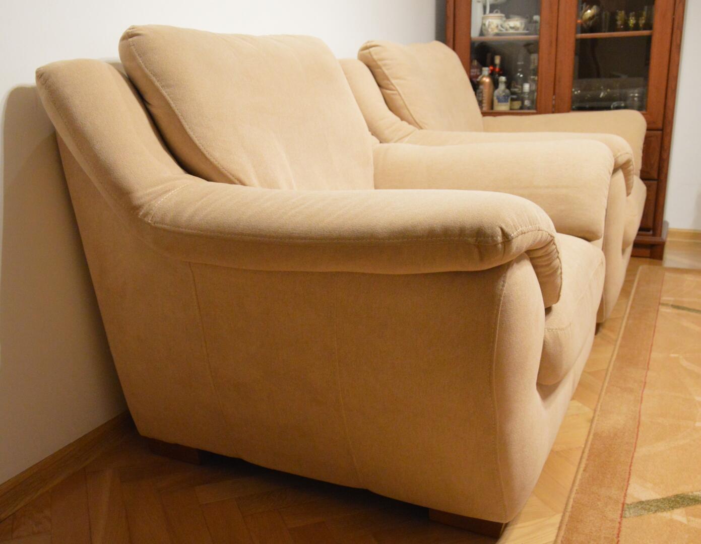 Sprzedam mało używany komplet wypoczynkowy, sofa +wygodne 2 fotele. Sofa z funkcją spania.