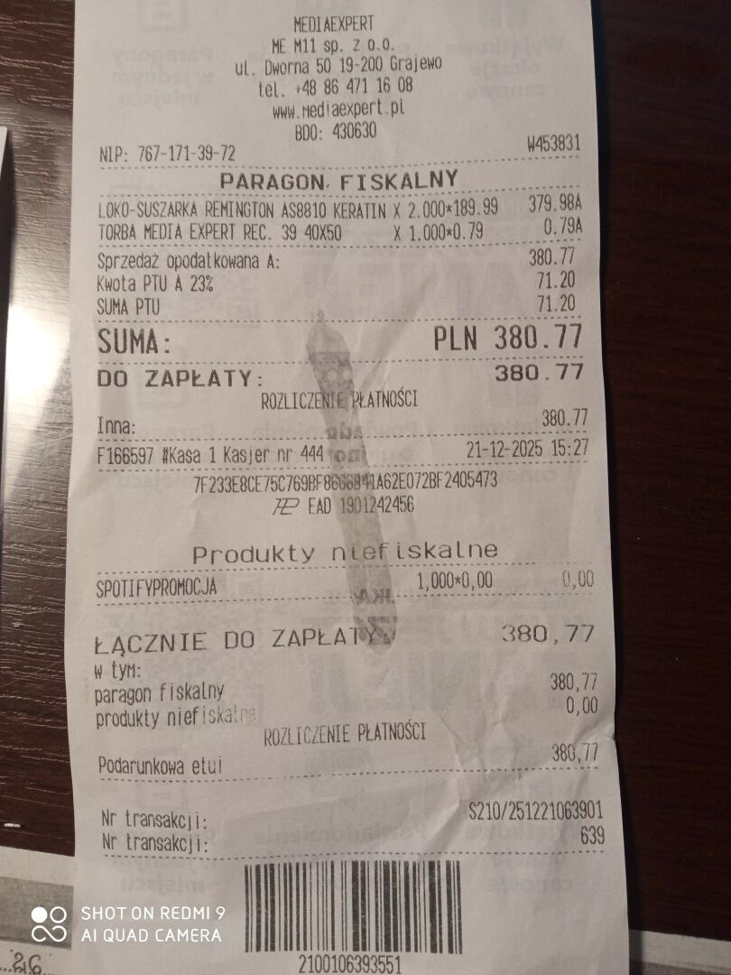 Zakupiona w MEDIAEXSPERT. Nietrafiony prezent na gwiazdkę. Rozpakowany w celu obejrzenia. Nieużywany.