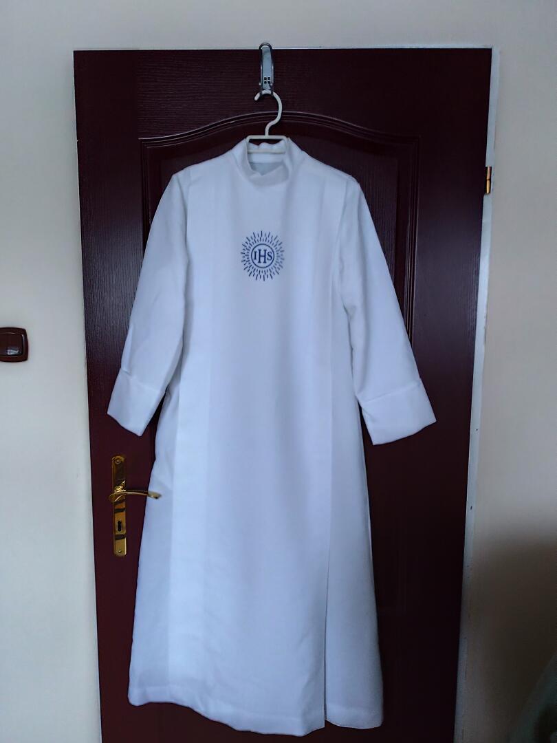 Alba komunijna dla chłopca oraz buty białe i spodnie. Oddam za dużą paczkę kawy Eduscho Family